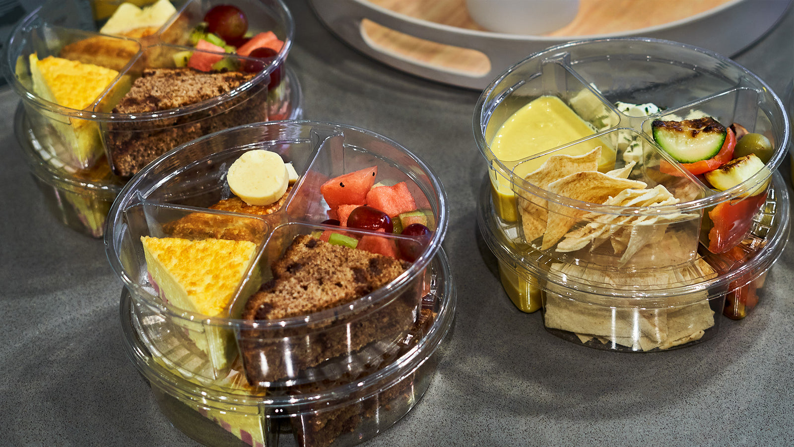seasonal preserve, turkey bacon, breakfast sausages, fresh berries, individual yogurts