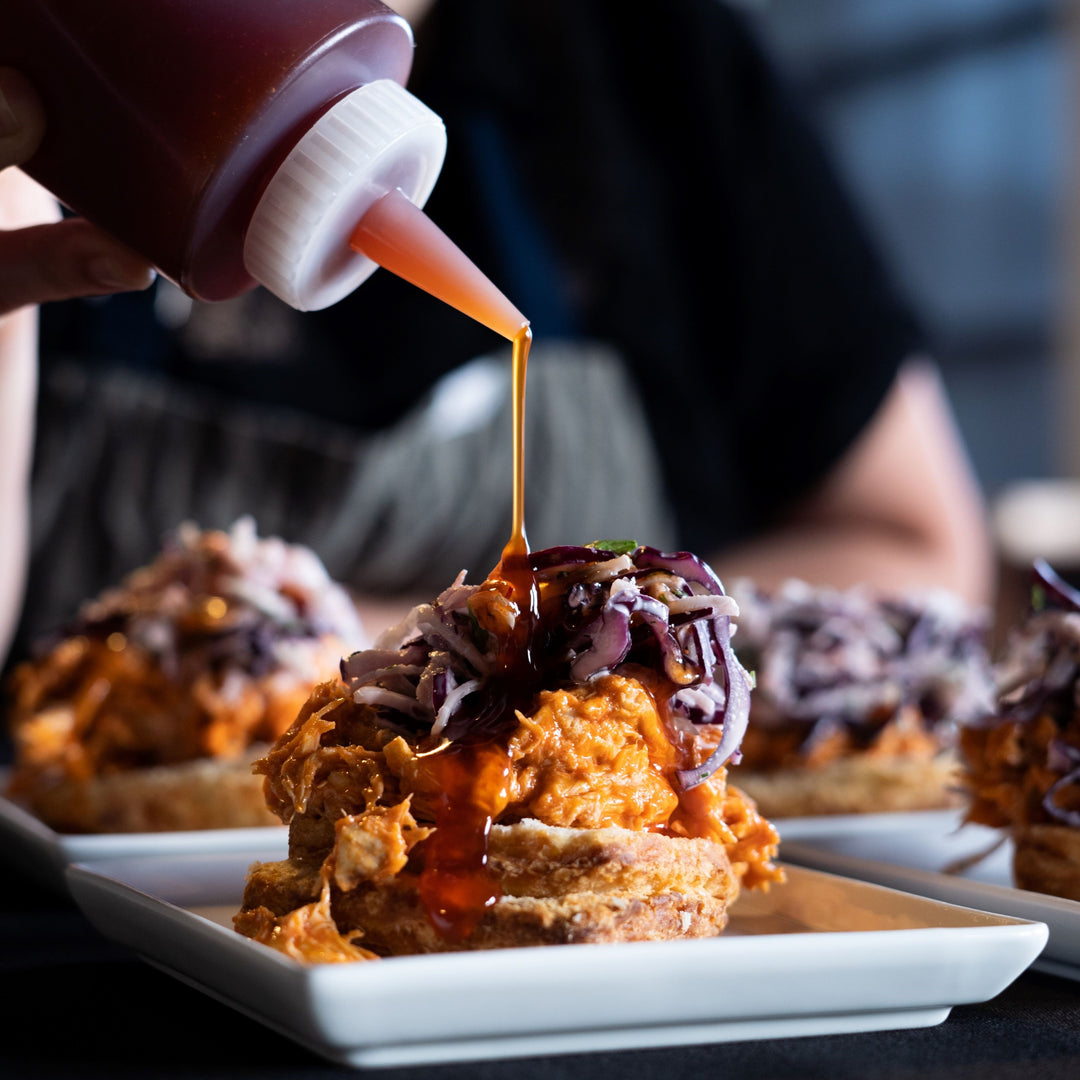 chicken and biscuit | buffalo pulled chicken | southern biscuit | ranch slaw | hot honey