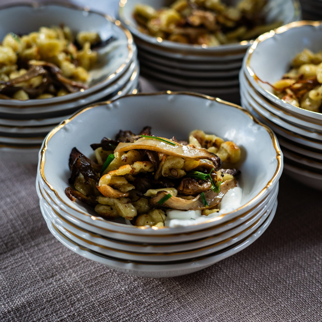 sausage spätzle ‘poutine’ | sauteed spätzle | smoked sausage | pickled shallots | chicken jus